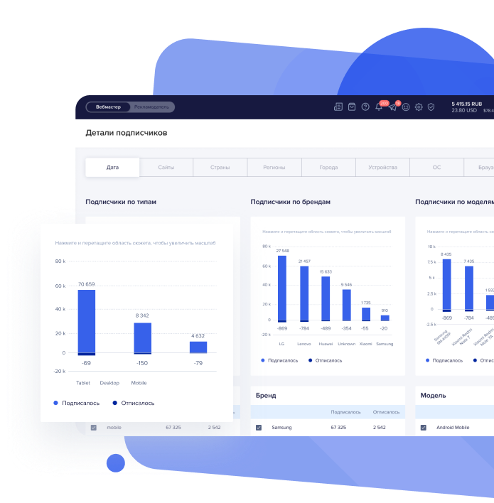 Additional income for your sites. Just put the code on the site, collect the subscriber base, connect monetization and earn more. If you do not have a website, you can simply buy traffic, send it to our landing pages and earn (for details contact our support).